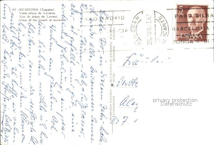 old postcard Benidorm Vista playa de Levante postalisch gelaufen Erhaltung siehe scans
