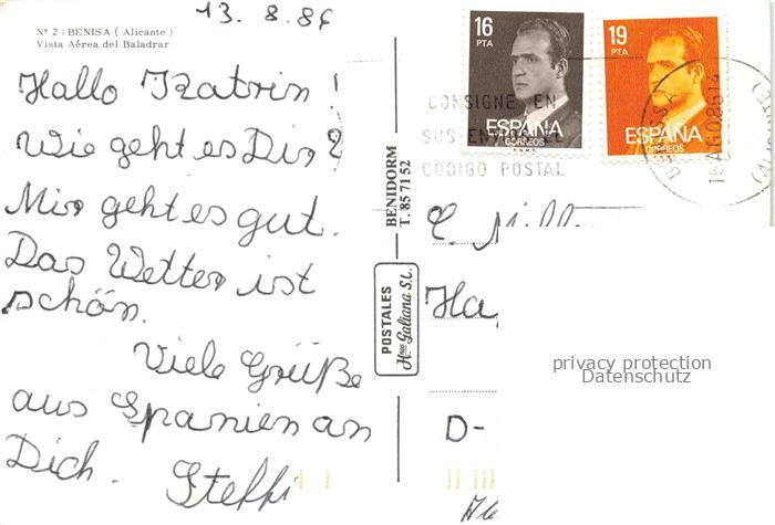 74155971 old postcard Benisa Alicante ES El Baladrar Fliegeraufnahme postalisch gelaufen Erhaltung siehe scans [WerneD78] KatCode: 11510