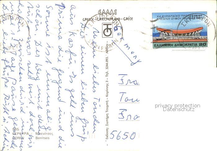 old postcard Benitses Ansicht vom Meer aus postalisch gelaufen Erhaltung siehe scans