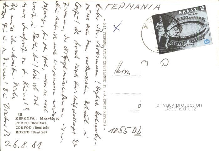 old postcard Benitses Kueste postalisch gelaufen Erhaltung siehe scans