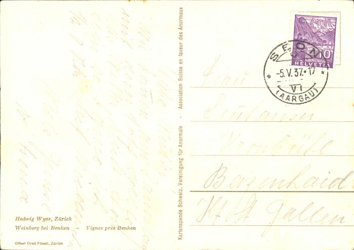 11378397 alte Postkarte Benken Woelflinswil Vignes Weinberg Kuenstlerkarte postalisch gelaufen gute Erhaltung KatCode: 11470010030304