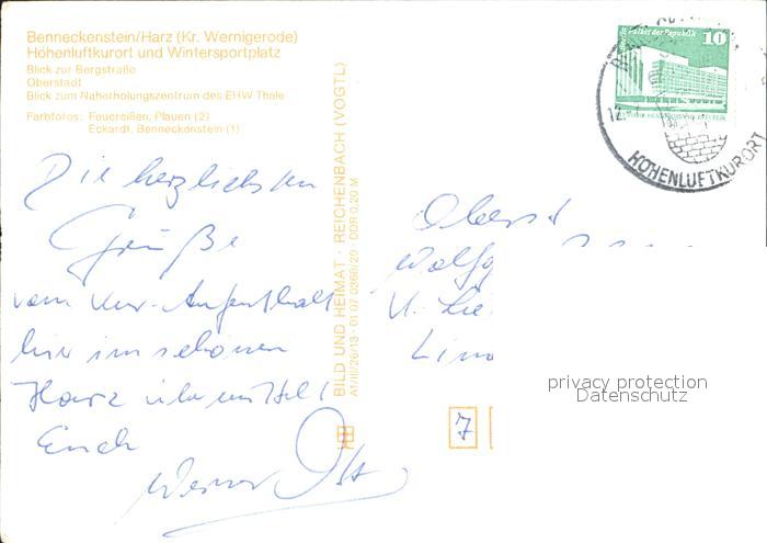 72352714 alte Postkarte Benneckenstein Bergstrasse Oberstadt Naherholungszentrum EHW Thale postalisch gelaufen Erhaltung siehe scans KatCode: 11110015085045