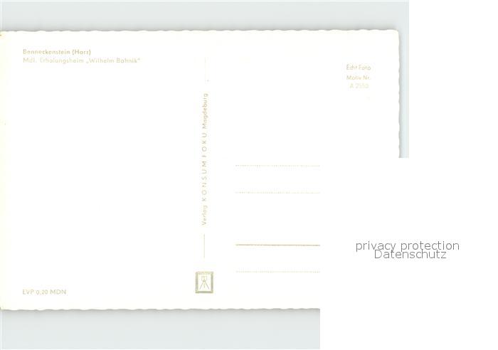 72078816 Benneckenstein Erholungsheim Wilhelm Bahnik postalisch nicht gelaufen Erhaltung siehe scans KatCode: 11110015085045