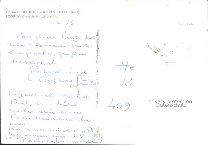 71989712 alte Postkarte Benneckenstein FDGB Erholungsheim Harzhaus postalisch gelaufen Erhaltung siehe scans KatCode: 11110015085045