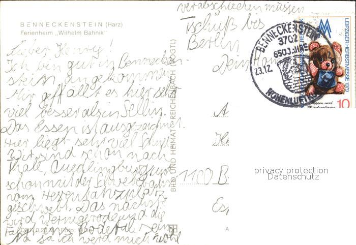72137629 alte Postkarte Benneckenstein Ferienheim Wilhelm Bahnik postalisch gelaufen Erhaltung siehe scans KatCode: 11110015085045