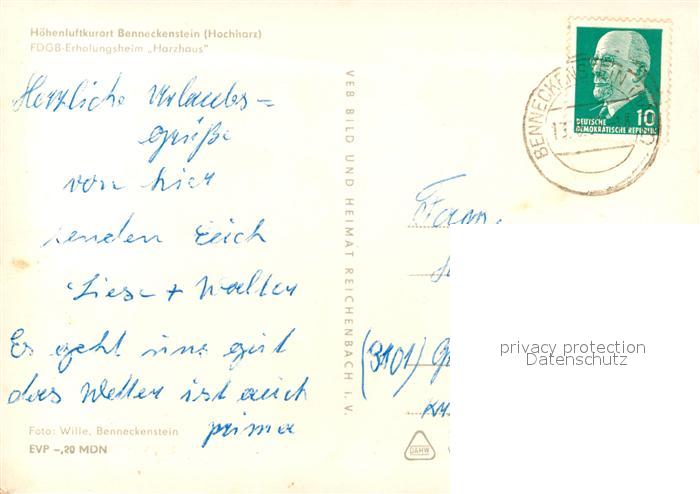 73209448 alte Postkarte Benneckenstein Harz FDGB Erholungsheim Harzhaus postalisch gelaufen Erhaltung siehe scans [FriedD77] KatCode: 11110015085045