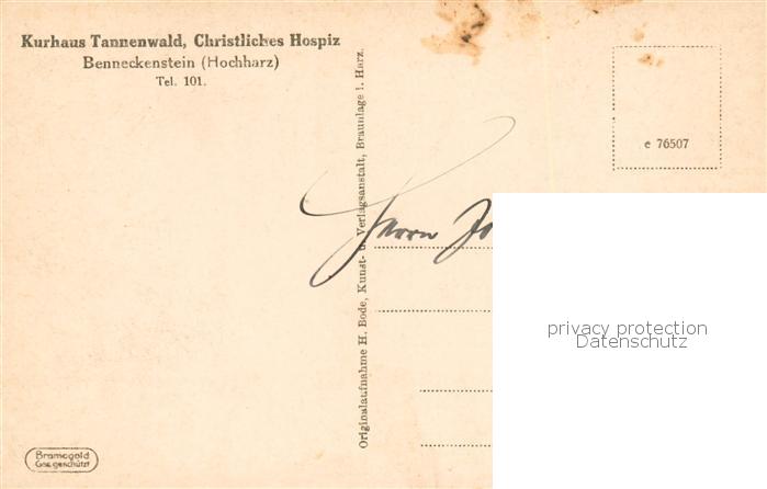 73821938 Benneckenstein Harz Kurhaus Tannenwald Christl Hospiz postalisch nicht gelaufen Erhaltung siehe scans [WerneD78] KatCode: 11110015085045