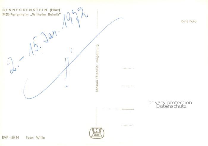 73544187 Benneckenstein Harz MDI Ferienheim Wilhelm Bahnik im Winter postalisch nicht gelaufen Erhaltung siehe scans [FriedD77] KatCode: 11110015085045