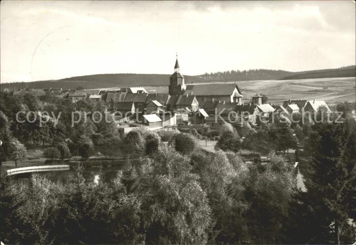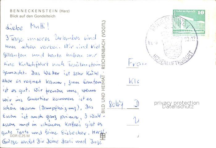 72040141 alte Postkarte Benneckenstein Ortsblick mit Gondelteich und Kirche postalisch gelaufen Erhaltung siehe scans KatCode: 11110015085045