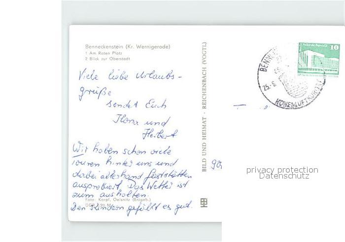 72384045 alte Postkarte Benneckenstein Roter Platz postalisch gelaufen Erhaltung siehe scans KatCode: 11110015085045