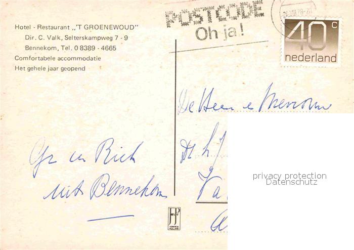 old postcard Bennekom Hotel Groenewoud postalisch gelaufen Erhaltung siehe scans [AndreD76]