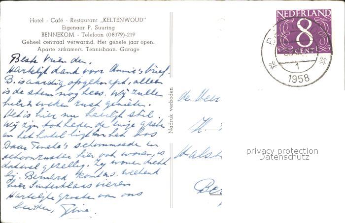 old postcard Bennekom Hotel Keltenwoud postalisch gelaufen Erhaltung siehe scans