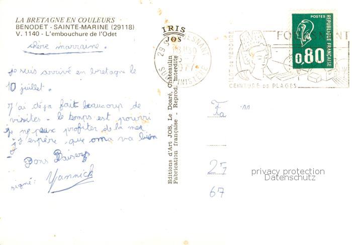 13835333 Benodet 29 Finistere Embouchure de l Odet vue aérienne postalisch gelaufen Fliegeraufnahme Erhaltung siehe scans [FriedD77] Fliegeraufnahme carte postale Frie Katcode 11170029429006