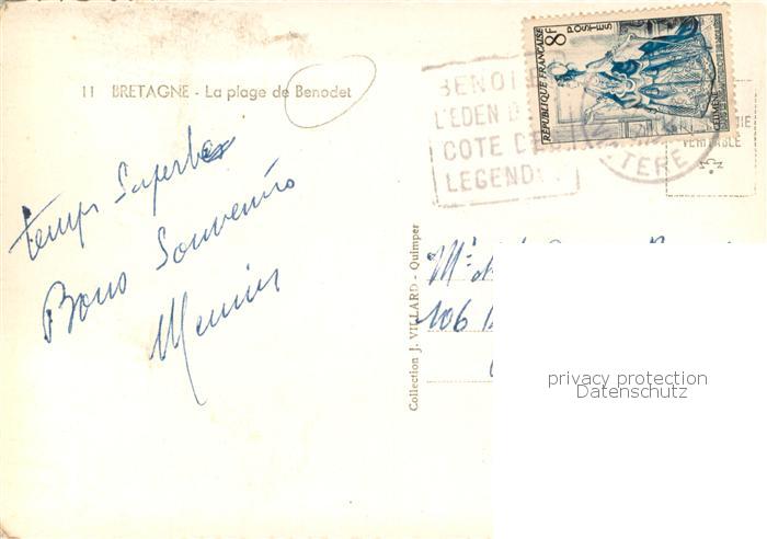 13783655 Benodet 29 Finistere Strand-Ansicht postalisch gelaufen Erhaltung siehe scans [LiesaD40] carte postale Lies Katcode 11170029429006