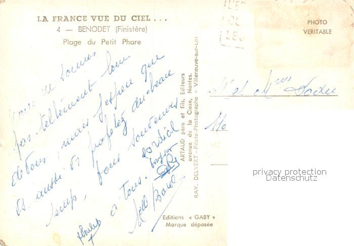 13583382 Benodet Fliegeraufnahme postalisch gelaufen Erhaltung siehe scans [KathaD81] carte postale Kath Katcode 11170029429006