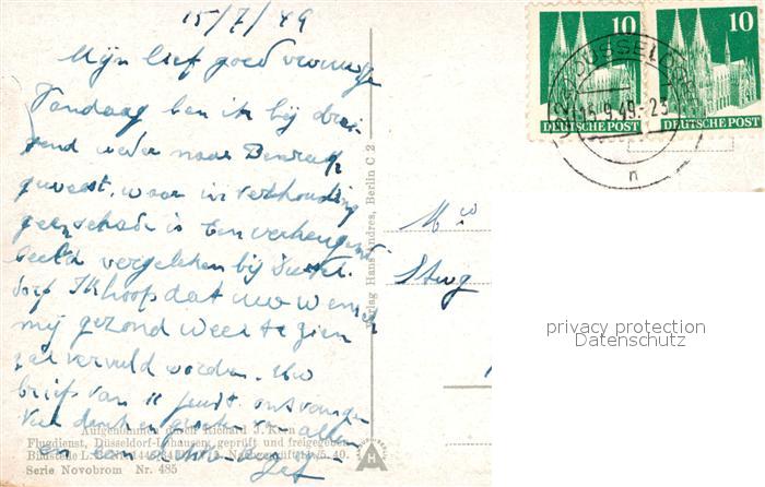 73606068 alte Postkarte Benrath Fliegeraufnahme postalisch gelaufen Erhaltung siehe scans [KathaD81] KatCode: 11110005111000