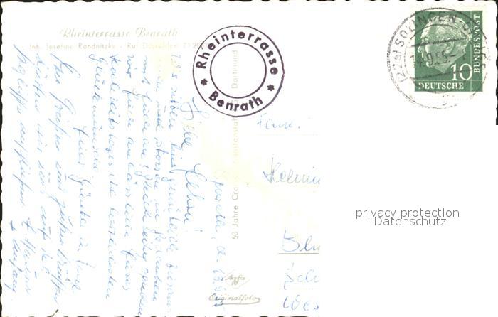 72030549 alte Postkarte Benrath Rheinterrasse Fliegeraufnahme postalisch gelaufen Erhaltung siehe scans KatCode: 11110005111000