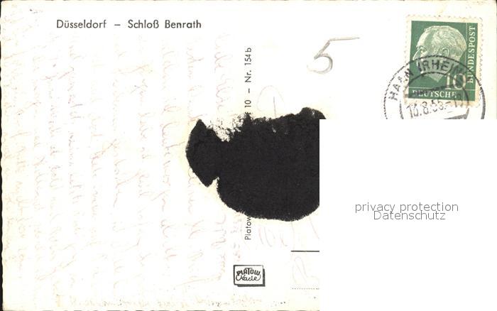 72401560 alte Postkarte Benrath Schlossweiher Schloss Franz Garten Auffahrt und Kavalierfluegel postalisch gelaufen Erhaltung siehe scans KatCode: 11110005111000