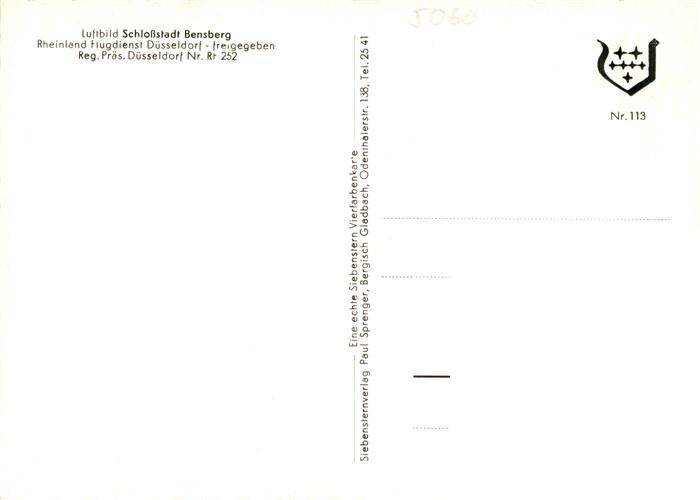 73885082 Bensberg Bergisch-Gladbach Fliegeraufnahme mit Schloss und Kirche postalisch nicht gelaufen Erhaltung siehe scans [FriedD77] KatCode: 11110005378004