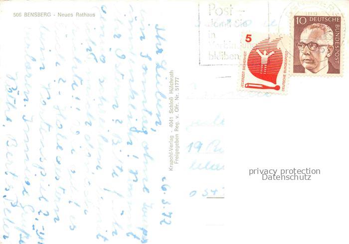 74132318 alte Postkarte Bensberg Bergisch-Gladbach NRW Neues Rathaus postalisch gelaufen Fliegeraufnahme Erhaltung siehe scans [FriedD77] KatCode: 11110005378004