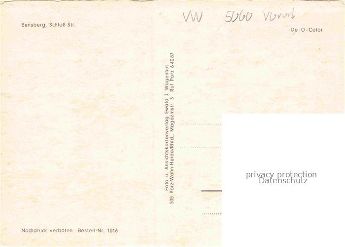 74104179 Bensberg Bergisch-Gladbach NRW Schloss-Strasse postalisch nicht gelaufen Erhaltung siehe scans [FriedD77] KatCode: 11110005378004