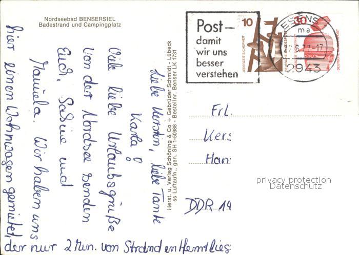 72042907 alte Postkarte Bensersiel Badestrand Campingplatz Fliegeraufnahme postalisch gelaufen Erhaltung siehe scans KatCode: 11110003462003