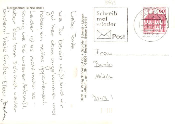 73930121 alte Postkarte Bensersiel Esens Fliegeraufnahme postalisch gelaufen Erhaltung siehe scans [WerneD78] KatCode: 11110003462003