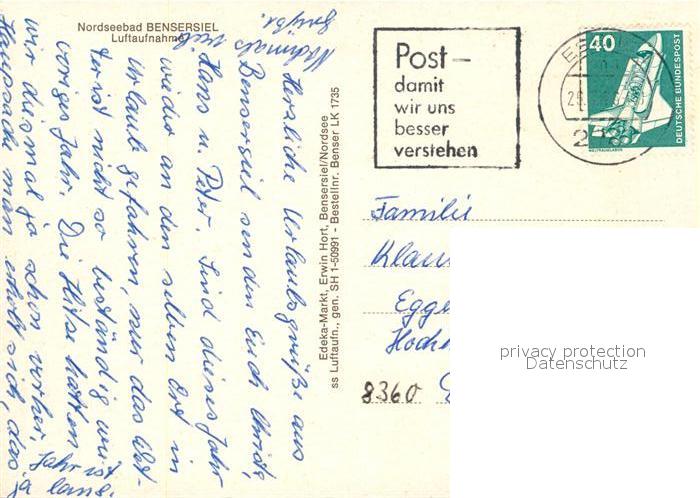 73026523 alte Postkarte Bensersiel Fliegeraufnahme postalisch gelaufen Erhaltung siehe scans [KathaD81] KatCode: 11110003462003