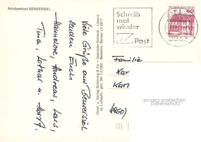 73020618 alte Postkarte Bensersiel Fliegeraufnahme postalisch gelaufen Erhaltung siehe scans [WerneD78] KatCode: 11110003462003