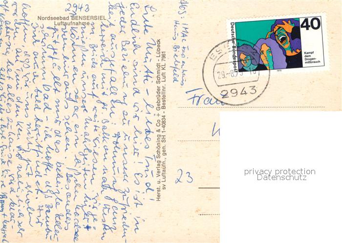72942526 alte Postkarte Bensersiel Fliegeraufnahme postalisch gelaufen Erhaltung siehe scans [LiesaD40] KatCode: 11110003462003