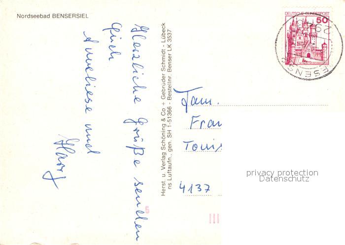 72928646 alte Postkarte Bensersiel Fliegeraufnahme postalisch gelaufen Erhaltung siehe scans [WerneD78] KatCode: 11110003462003