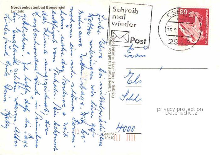 72888056 alte Postkarte Bensersiel Fliegeraufnahme postalisch gelaufen Erhaltung siehe scans [AndreD76] KatCode: 11110003462003
