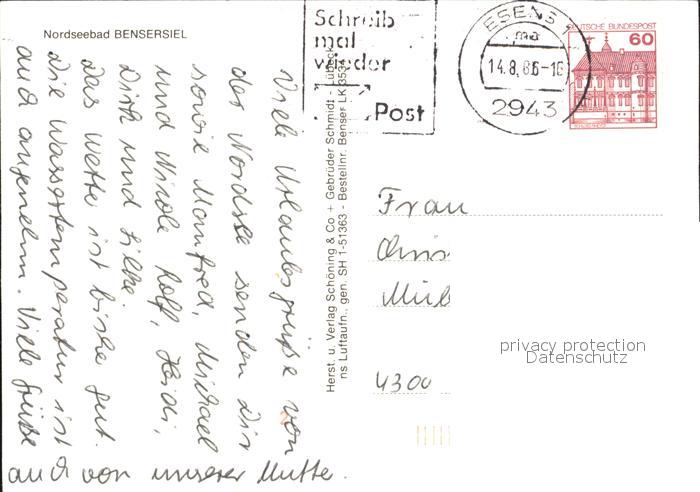 72549600 alte Postkarte Bensersiel Fliegeraufnahme postalisch gelaufen Erhaltung siehe scans [AndreD76 kv022box] KatCode: 11110003462003