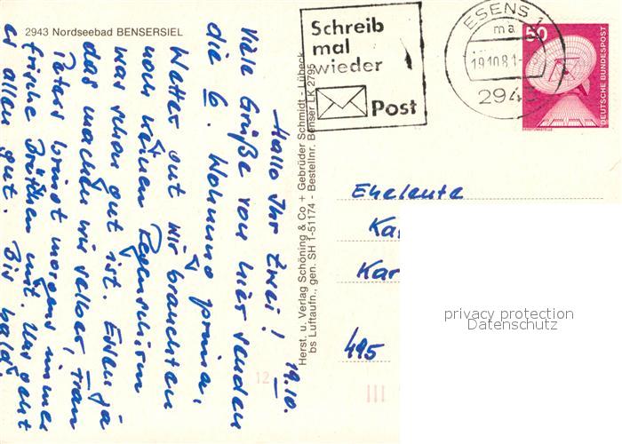 73042603 alte Postkarte Bensersiel Hafen Fliegeraufnahme postalisch gelaufen Erhaltung siehe scans [FriedD77] KatCode: 11110003462003
