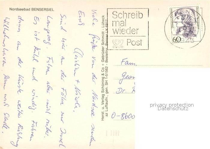 73723511 alte Postkarte Bensersiel Nordseebad Fliegeraufnahme postalisch gelaufen Erhaltung siehe scans [WerneD78] KatCode: 11110003462003