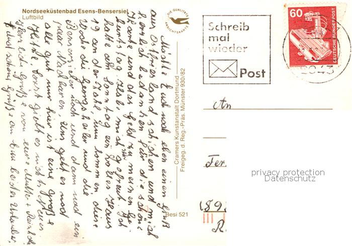 73868168 alte Postkarte Bensersiel Nordseekuestenbad postalisch gelaufen Fliegeraufnahme Erhaltung siehe scans [FriedD77] KatCode: 11110003462003