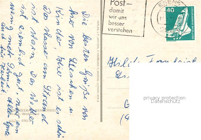 73093670 alte Postkarte Bensersiel Strand-Wellenbad postalisch gelaufen Erhaltung siehe scans [NatalD47] KatCode: 11110003462003