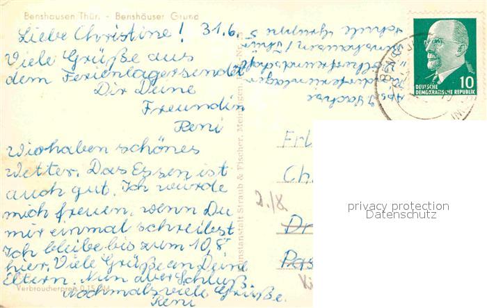 72638355 alte Postkarte Benshausen Benshaeuser Grund postalisch gelaufen Erhaltung siehe scans [KathaD79] KatCode: 11110016066006