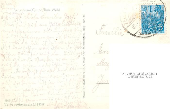 73841608 alte Postkarte Benshausen Benshauser Grund postalisch gelaufen Erhaltung siehe scans [FriedD77] KatCode: 11110016066006