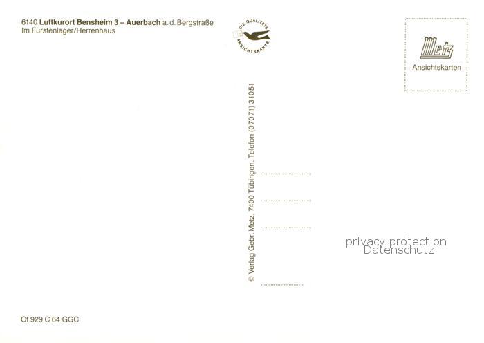 73834310 Bensheim-Auerbach Bergstrasse Im Fuerstenlager Herrenhaus postalisch nicht gelaufen Erhaltung siehe scans [WerneD78] Wern Katcode 11110006431002