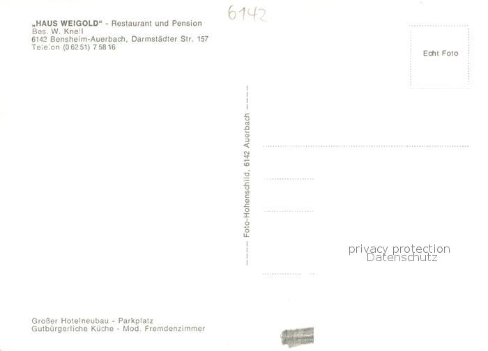 73702647 Bensheim-Auerbach Bergstrasse Restaurant-Pension Haus Weigold Innen und Aussen postalisch nicht gelaufen Erhaltung siehe scans [LiesaD40] KatCode: 11110006431002