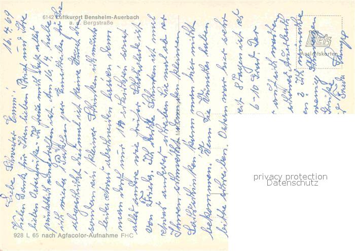 72847815 Bensheim Bergstrasse Auerbach Panorama postalisch nicht gelaufen Erhaltung siehe scans [KathaD81] KatCode: 11110006431002