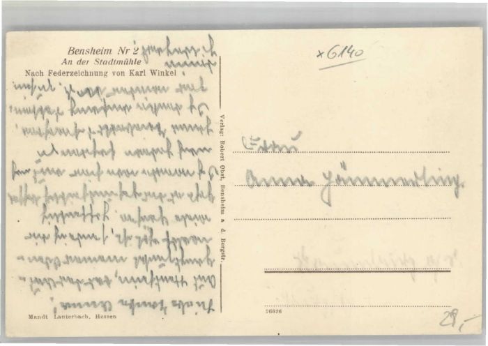 40674145 Bensheim Bergstrasse Bensheim Nach Federzeichnung von Karl Winkel An der Stadtmuehle postalisch nicht gelaufen Alte Ansichtskarte Postkarte Katcode 11110006431002