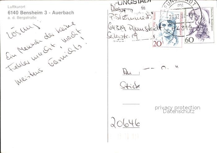 72381521 alte Postkarte Bensheim Bergstrasse Bergstrasse postalisch gelaufen Erhaltung siehe scans KatCode: 11110006431002