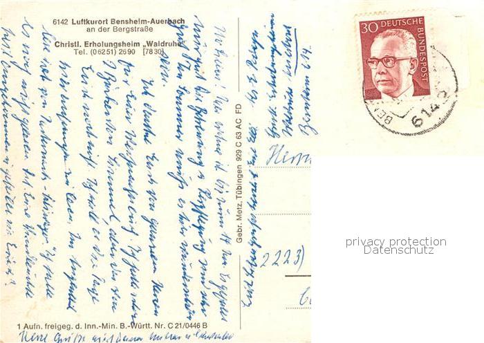 72935263 alte Postkarte Bensheim Bergstrasse Erholunghseim Waldruhe postalisch gelaufen Erhaltung siehe scans [LiesaD40] KatCode: 11110006431002