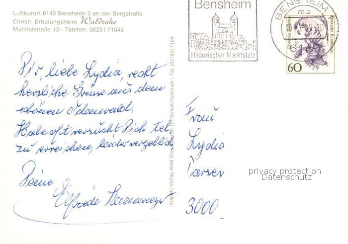 73017266 alte Postkarte Bensheim Bergstrasse Erholungsheim Waldruhe postalisch gelaufen Erhaltung siehe scans [NatalD47] KatCode: 11110006431002