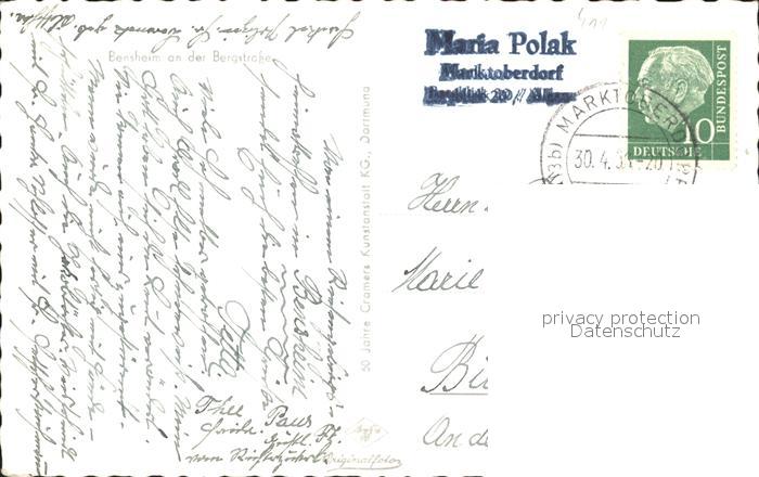 71925628 alte Postkarte Bensheim Bergstrasse Fliegeraufnahme postalisch gelaufen Erhaltung siehe scans KatCode: 11110006431002
