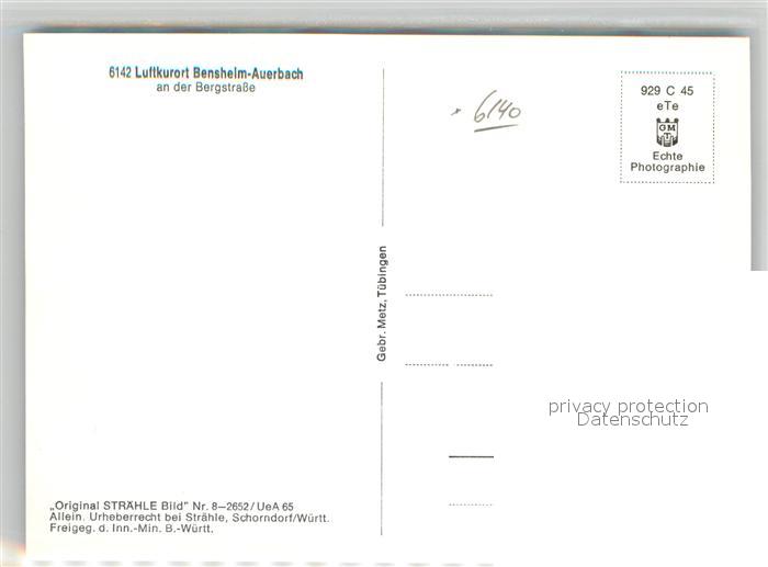 42910507 Bensheim Bergstrasse Fliegeraufnahme postalisch nicht gelaufen Erhaltung siehe scans [KathaD81] KatCode: 11110006431002