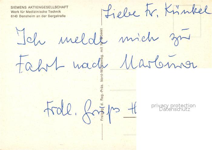 73246973 Bensheim Bergstrasse Fliegeraufnahme Siemens AG Werk Medizintechnik postalisch nicht gelaufen Erhaltung siehe scans [KathaD81] KatCode: 11110006431002