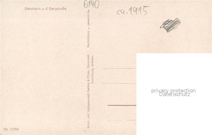 73755170 Bensheim Bergstrasse Gesamtansicht postalisch nicht gelaufen Erhaltung siehe scans [LiesaD40] KatCode: 11110006431002
